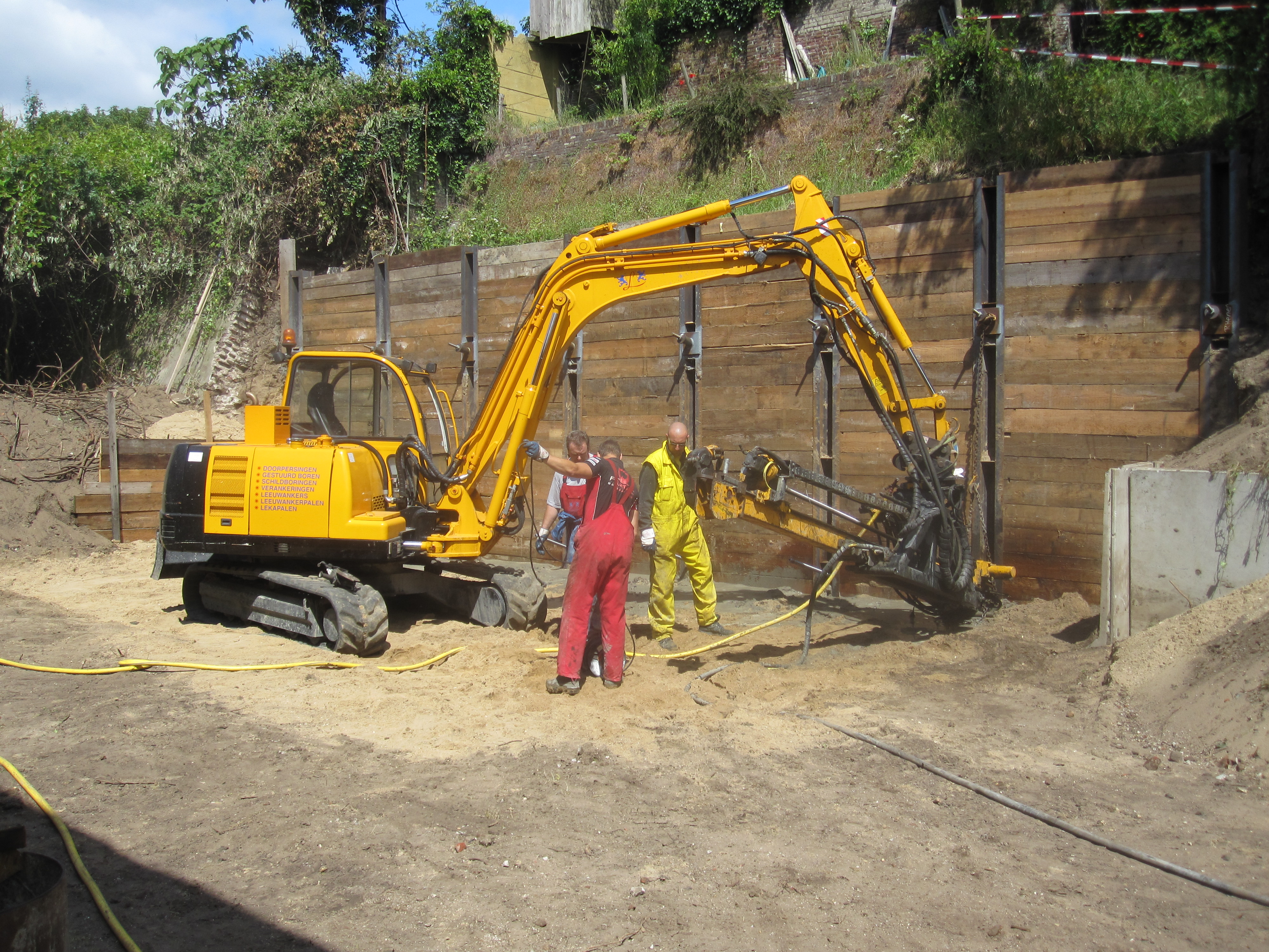 In het talud is een berliner wand geplaatst welke met een dubbele rij groutankers vast wordt gehouden. Vervolgens is er een betonconstructie gestort, net als bij een kelder.
